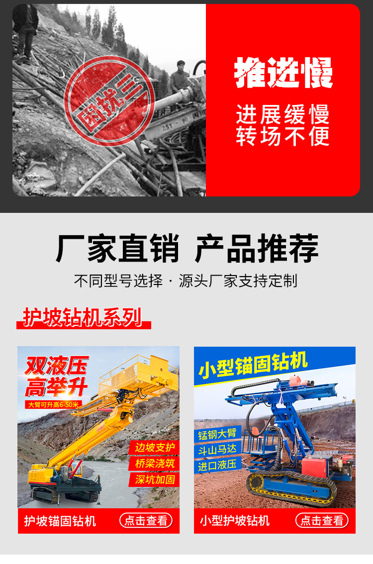 護欄打樁機靜壓樁頭抗浮錨桿鉆機注漿加固鉆機光伏打樁機履帶錨固鉆機液壓錨固鉆機隧道鉆機長螺旋鉆機螺旋鉆孔機氣動水井鉆機旋挖鉆機潛孔鉆機勘探鉆機